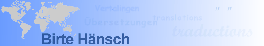 Herzlich willkommen auf der Website von Birte Hänsch Diplom - Übersetzerin Für das Land NRW ermächtigte Übersetzerin Für die englische, französische und niederländische Sprache